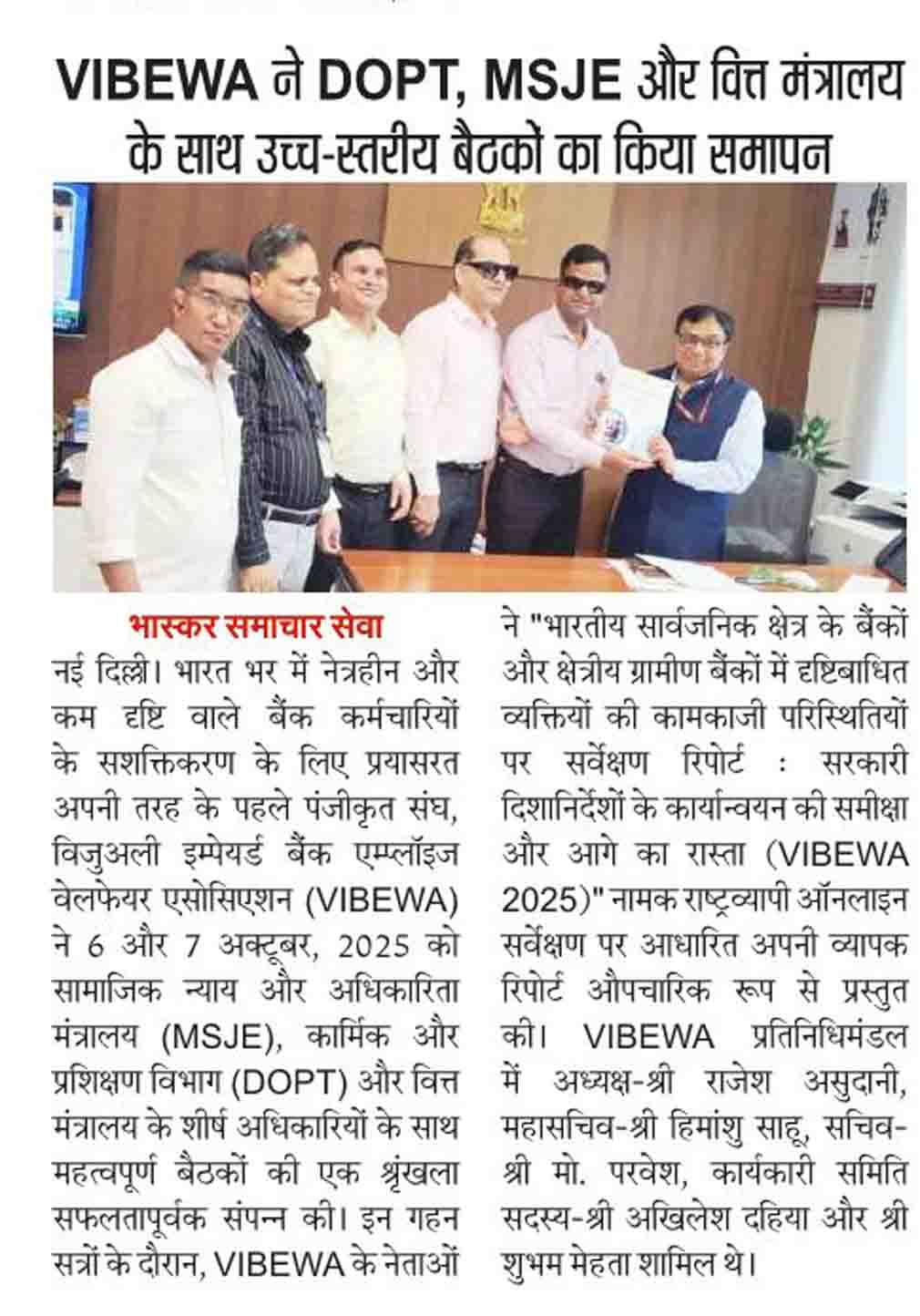 - Dainik Bhaskar Coverage of VIBEWA on Page no 15